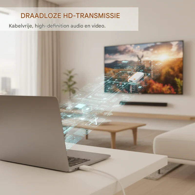 Binnen 10 seconden aangesloten: Wij garanderen de simpelste installatie ooit. U steekt de zender in uw telefoon, de ontvanger in uw TV en u heeft direct beeld. Geen stress, geen kabels, geen foutmeldingen.