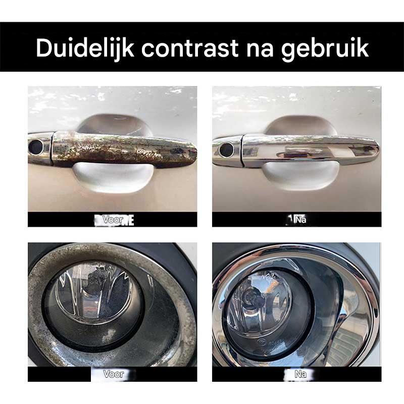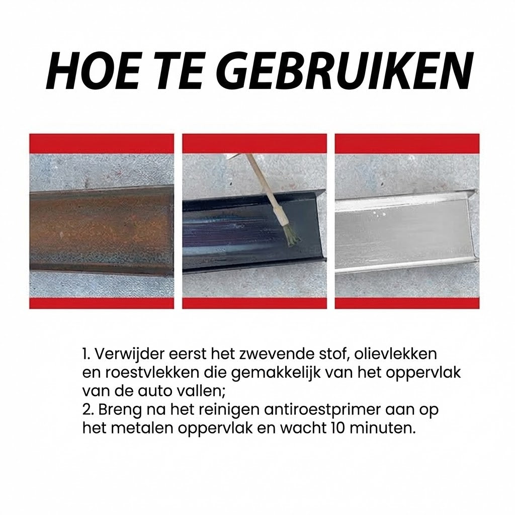 Verwijdert roest direct zonder schuren Transformeert roest in een beschermlaag Voorkomt nieuwe roest en corrosie Veilig voor verf, metaal en chroom Milieuvriendelijk en niet giftig
